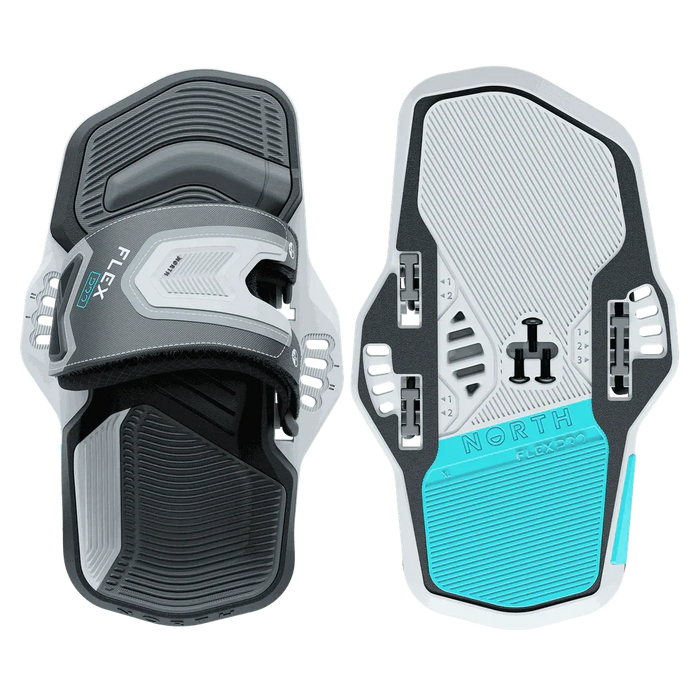 The Flex Pro are engineered to help absorb and disperse impact after gravity-defying boosts, with triple-density dynamic support technology to protect your heels and guarantee softer landings. For 2025 we’ve updated the Flex Pro with a new internal skeletal stiffening inside the top strap. This stiffening wing improves the shape hold of the top strap, making it easier, and faster, to slide your foot in and out. The stiffening also increases the support for your foot, giving you a more locked-in feel, which helps boost your confidence when you’re pushing the limits. A contoured anatomical footbed and ramped chassis provides additional structure stability, and lateral support. Outer-angled heel inserts ensure your foot rolls properly, providing a stable landing and protecting your knees and ankles when loading up to release into the air. The GripFlex lightweight, rubberized EVA inner maintains grip underfoot when wet, while the fine grip pattern helps keep you locked in on various angles, preventing your foot from sliding out of the binding. An adjustable injection-Velcro top flap with split-Velcro fastenings provides a strong yet flexible hold and customisable fit. The strap has a soft foam and KnitFlex seamless lining for comfort, allowing your foot to shuffle more easily into position. For your ultimate fit, ensure there’s enough room for your toes to stretch and flex, and the strap doesn’t slip or rub. The upper should feel secure, but not too tight, and the footbed should match the shape of your foot. The Flex Pro are compatible with both our 2023-2025 FlipTech centreline and 2020-2022 offline TwinTip mounting systems. Industry-standard screw spacings ensure they can also be fitted to other boards.